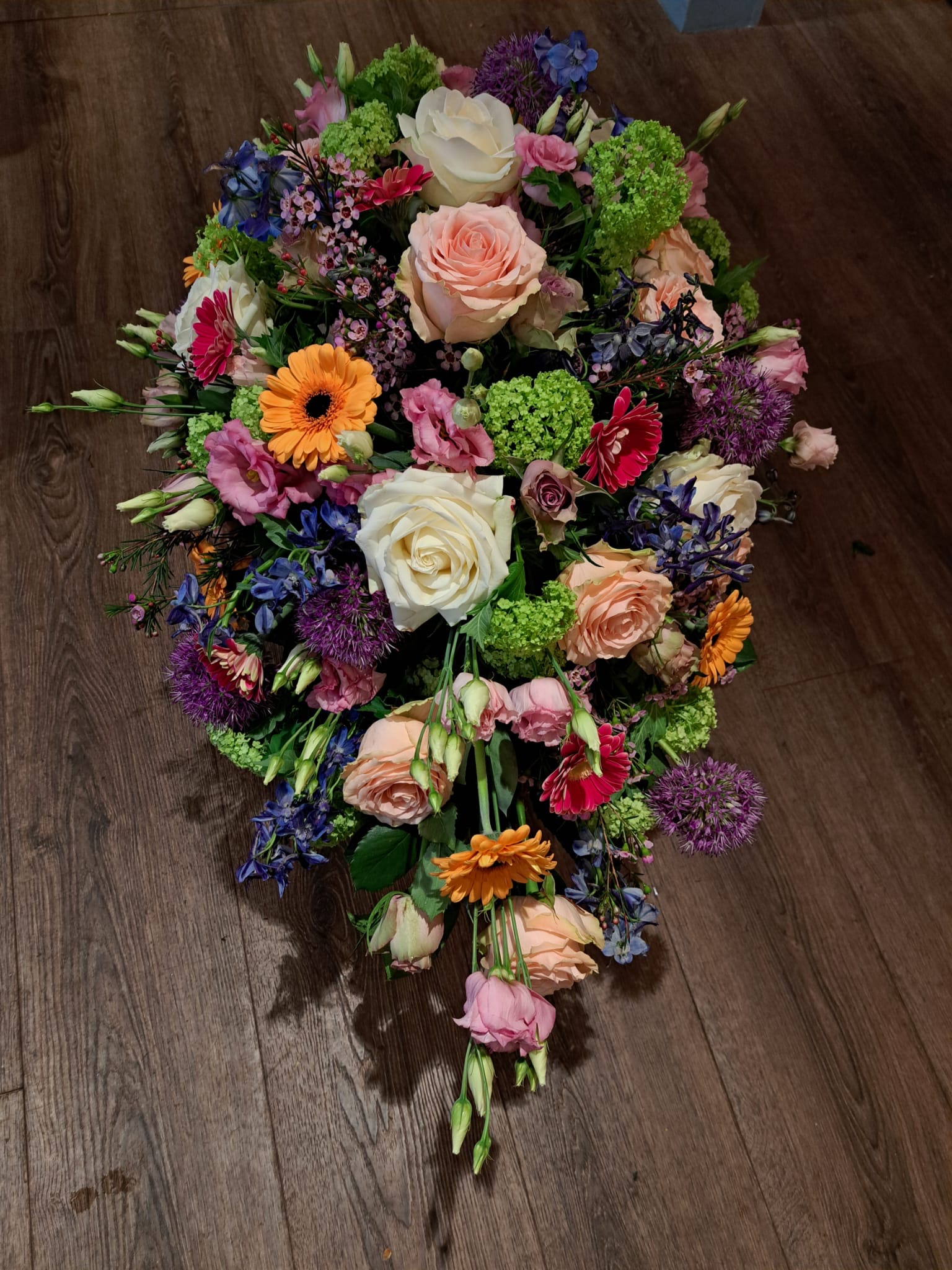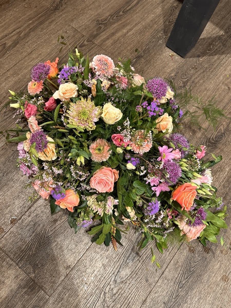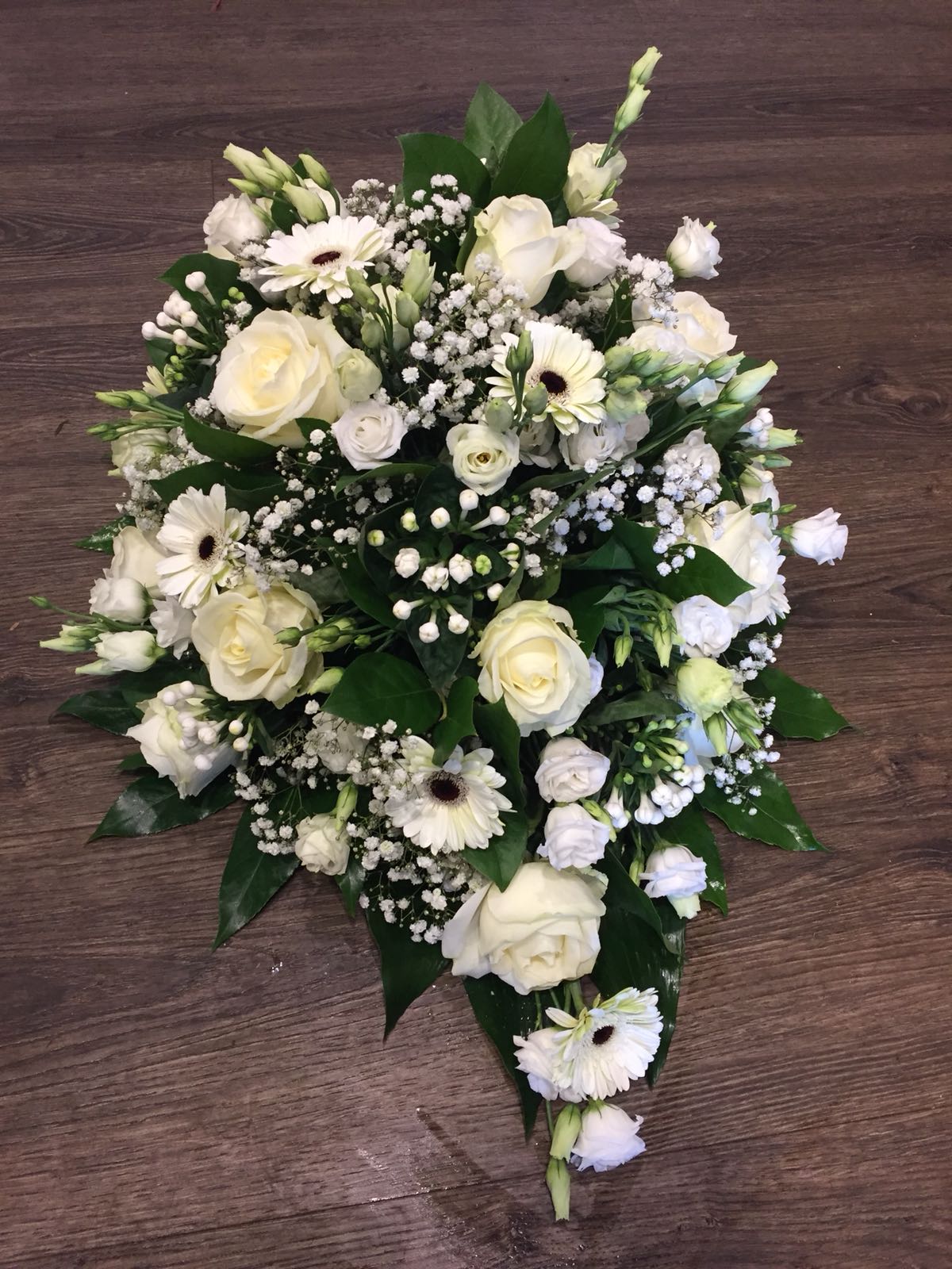 Een langwerpig arrangement van 70cm, een langwerpig arrangement van 90cm of een langwerpig arrangement van 120cm lang.